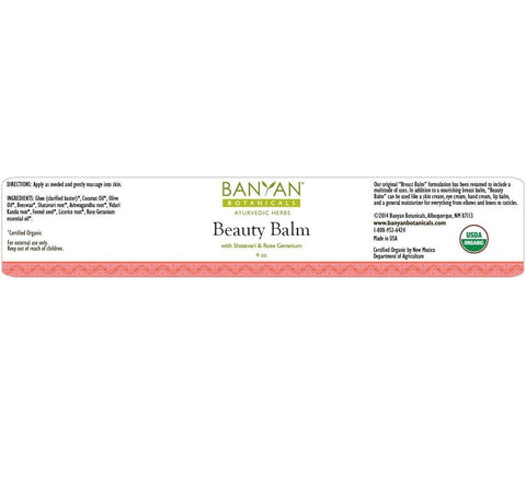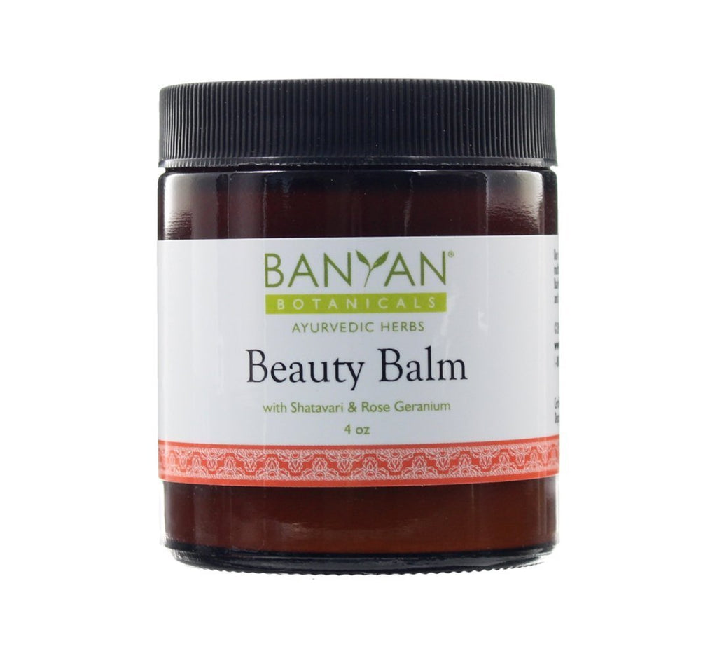 • Our award winning Beauty Balm isn’t just about looking beautiful—it is also about deep nourishment that helps you feel beautiful from the outside-in. It might surprise you to find that ghee provides a base for this nutrient and moisture rich balm. According to Ayurveda, external use of ghee supports soft supple skin by effectively helping to balance your skin’s moisture levels. Shatavari and ashwagandha are infused into this versatile formulation to tone, nourish, and rejuvenate the tissues.