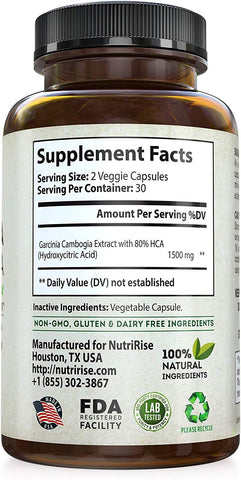 • MADE IN USA: Each and every batch of NutriRise Garcinia Cambogia pills are proudly manufactured in a cGMP Compliant and FDA Registered Lab in the United States. Third-Party Certified for Safety & Quality Assurance.*